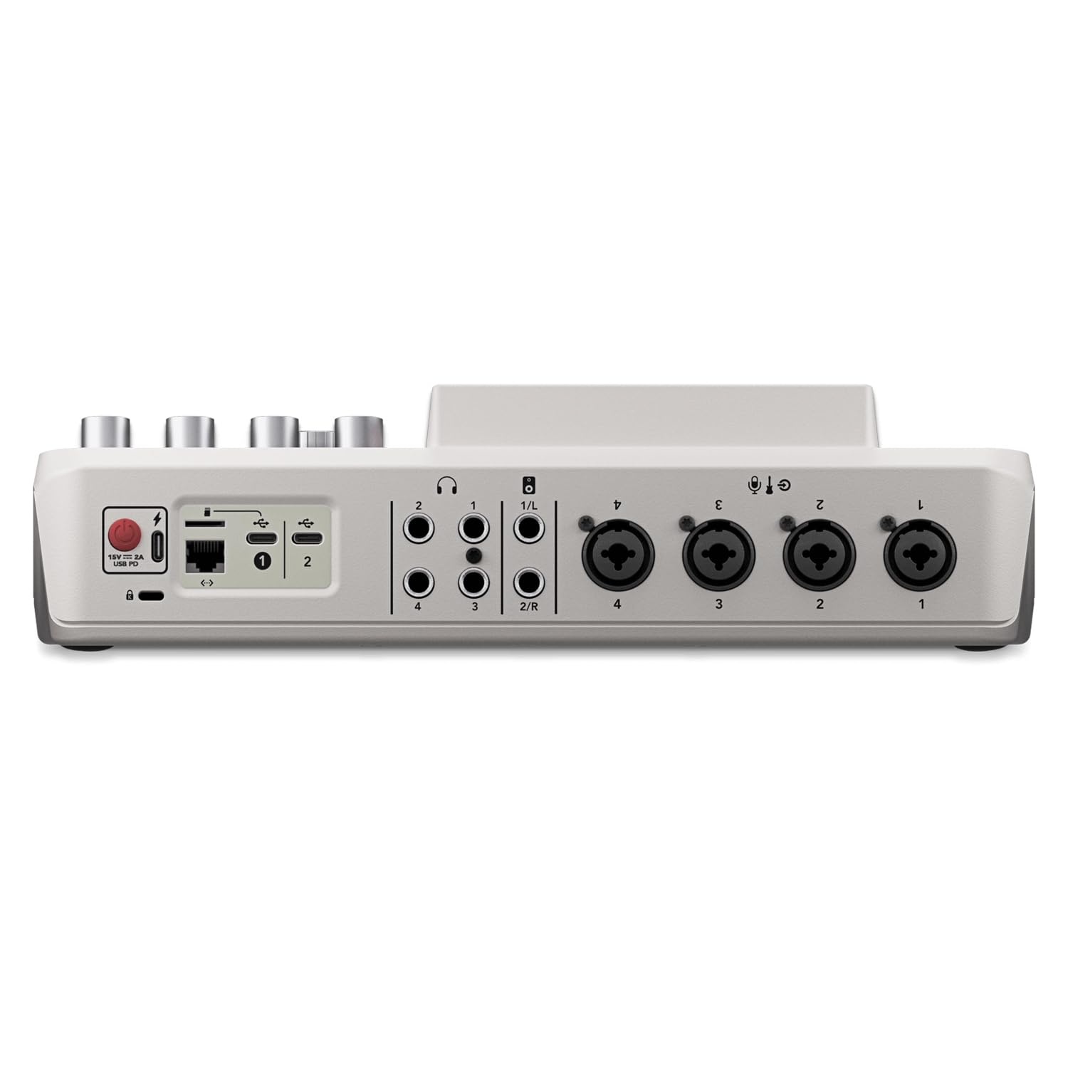 Anschlüsse + Technische Details: 4x Neutrik Combo-Eingang XLR / 6,35mm TS (Mikrofon/Line/Instrument) 2x Line-Out 6,35mm TRS 4x Kopfhörerausgang 6,35mm TRS 2x USB-C Anschluss Frequenzgang: 20 Hz - 20 kHz Interner Speicher: 4 GB Stromversorgung: USB-C Systemvoraussetzungen: Windows 10 Version 1803 oder neuer Mac OS 10.15 oder neuer Maße: 30,5 x 27 x 6 cm Gewicht: 1960 g
