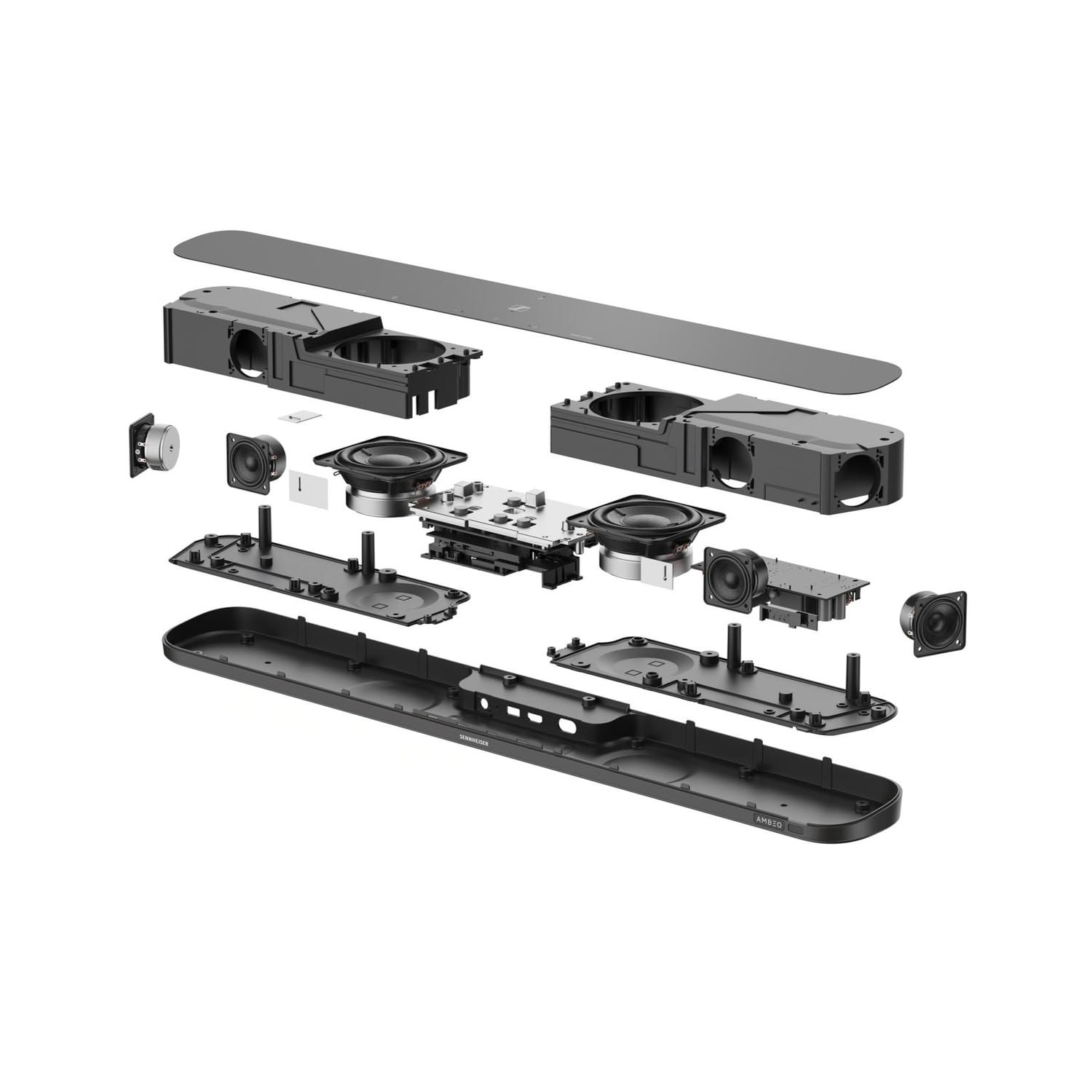 Einzelheiten: Mit der AMBEO Soundbar Mini erlebst du eine neue Dimension des Home Entertainments. Diese kompakte Soundbar bietet dir ein immersives 3D-Audioerlebnis, perfekt für Film, Fernsehen und Musik. Die AMBEO Virtualisierungstechnologie und die Kompatibilität mit Dolby Atmos®, DTS:X® und weiteren Codecs versetzen dich mit ihrem immersiven Surround-Sound in das Zentrum des Geschehens. Bluetooth, WLAN und integrierte virtuelle Assistenten ermöglichen die einfache Steuerung und den Zugriff auf deine bevorzugten Streamingdienste. Erlebe mit den Dual-Subwoofers und leistungsstarken Treibern Sound auf höchstem Niveau mit druckvollem Bass und kristallklarer Klangwiedergabe. Die automatische Raumkalibrierung sorgt für die optimale Positionierung der virtuellen Lautsprecher und somit für den perfekten Surround-Sound. Darüber hinaus werden dank der UpMix-Technologie Stereoinhalte automatisch auf das 5.1 Soundsystem hochskaliert, um eine raumfüllende Klangbühne zu generieren. In Kombination mit der intuitiven Smart Control App kannst du den Klang nach Belieben anpassen, Feineinstellungen des Equalizers vornehmen oder aus verschiedenen Virtualisierungsstufen wählen. Neben der Voice Enhancement-Funktion für bessere Sprachverständlichkeit sorgt der Nachtmodus für diskretes Hören bei Nacht. Der Name Sennheiser steht für Verlässlichkeit, Innovation und außergewöhnlichen Klang. Die AMBEO Soundbar Mini repräsentiert all diese Eigenschaften in einem kleinen, kompakten Gerät, das sich nahtlos in jedes Ambiente einfügt. Mit dieser leistungsstarken, kompakten Soundbar verwandelst du dein Zuhause in ein Heimkino, in dem du ein raumfüllendes Klangwunder mit allen Sinnen erleben kannst.